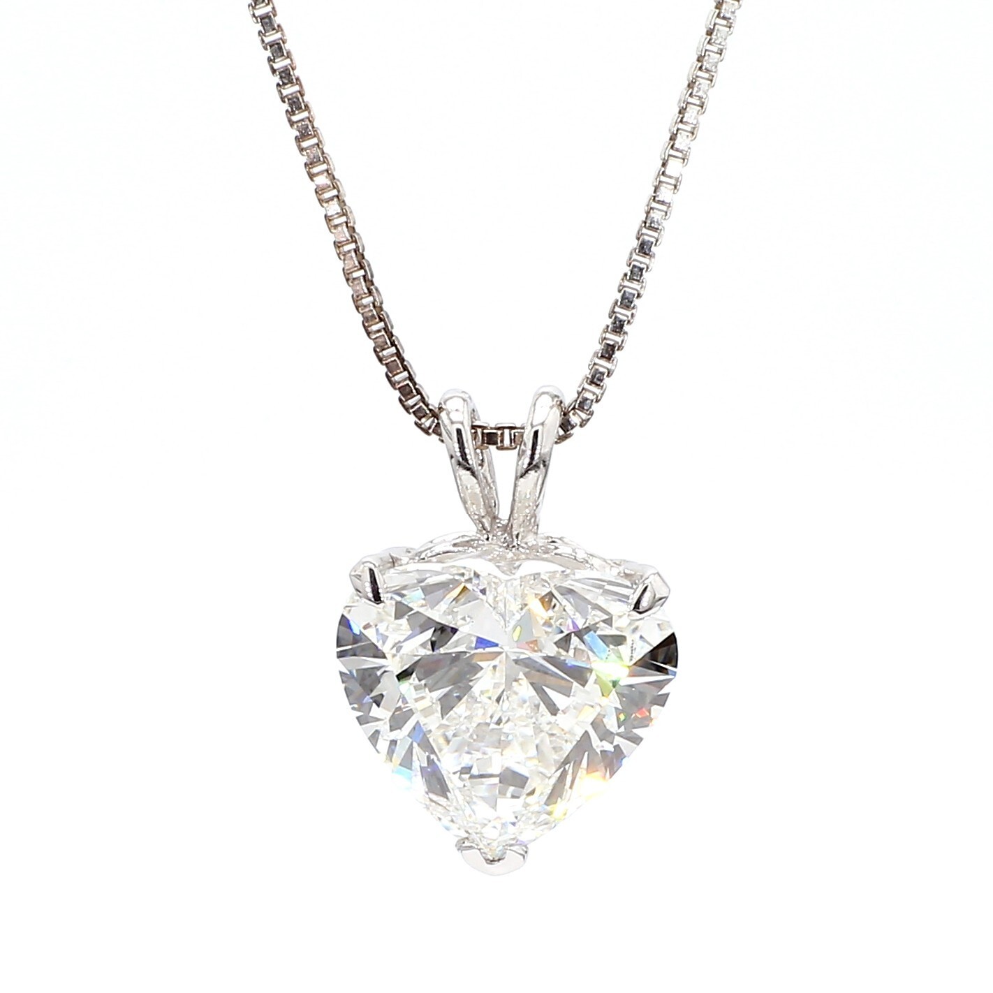 4.13 Ct HEART Cut F Color VS1 Diamond Pendant Solid 14K WHITE Gold Pendent