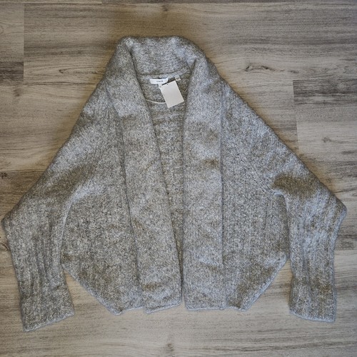 Vince Alpaca Sweater Womens M Gray Textured Dolman Sleeve Open Cardigan Italy