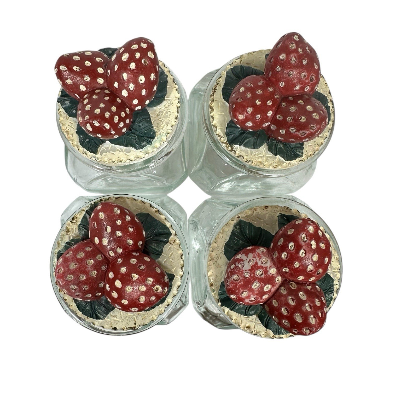 Vintage 3D Strawberry Wooden Spice Rack 4 Glass Jars with Lids 80's 90's Kitchen Decor