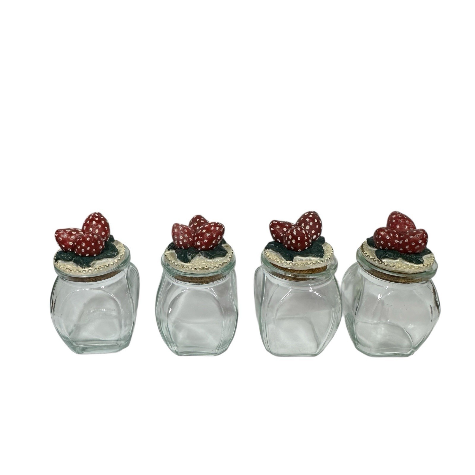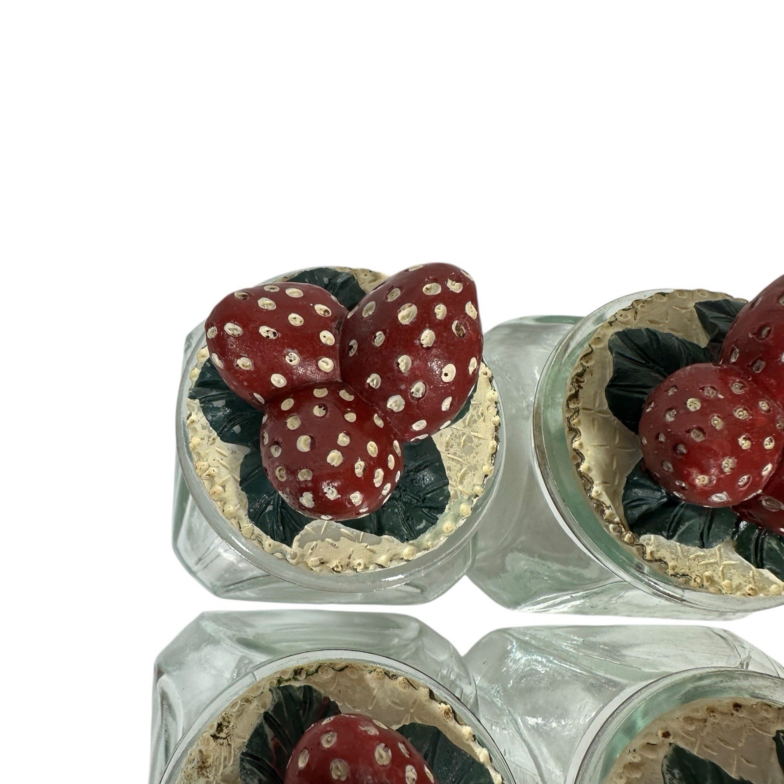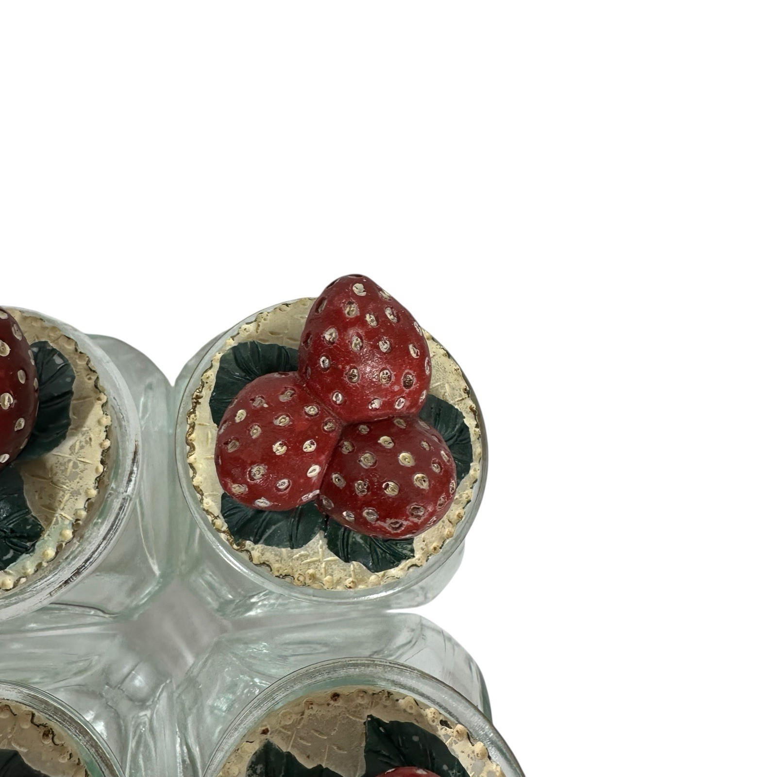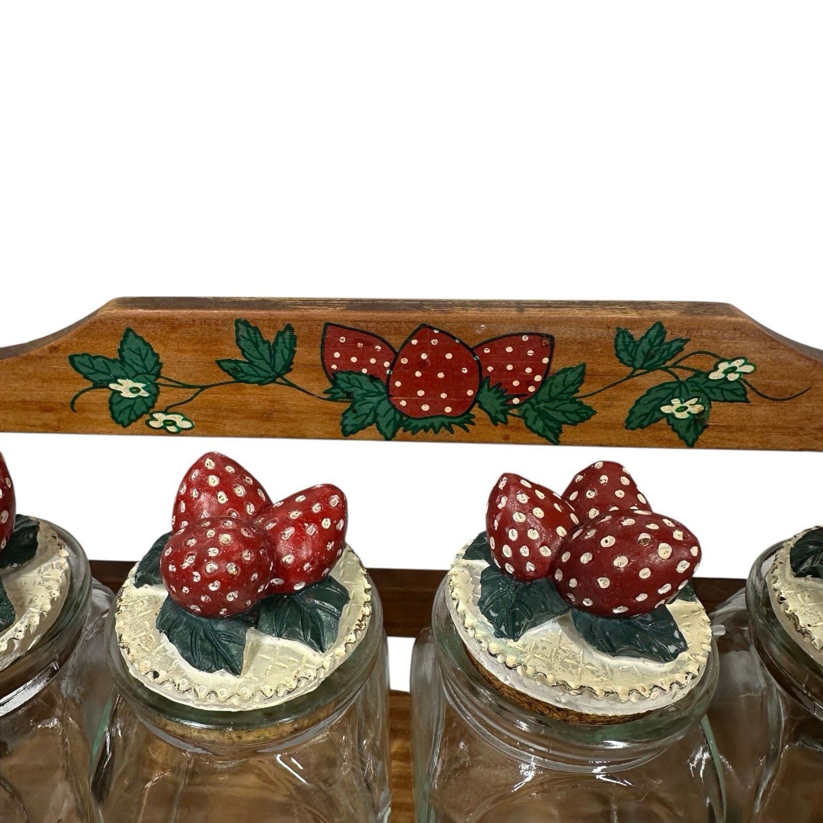 Vtg 3D Strawberry Wooden Spice Rack & 4 Glass Jars 80s 90s Kitchen Decor 10" L