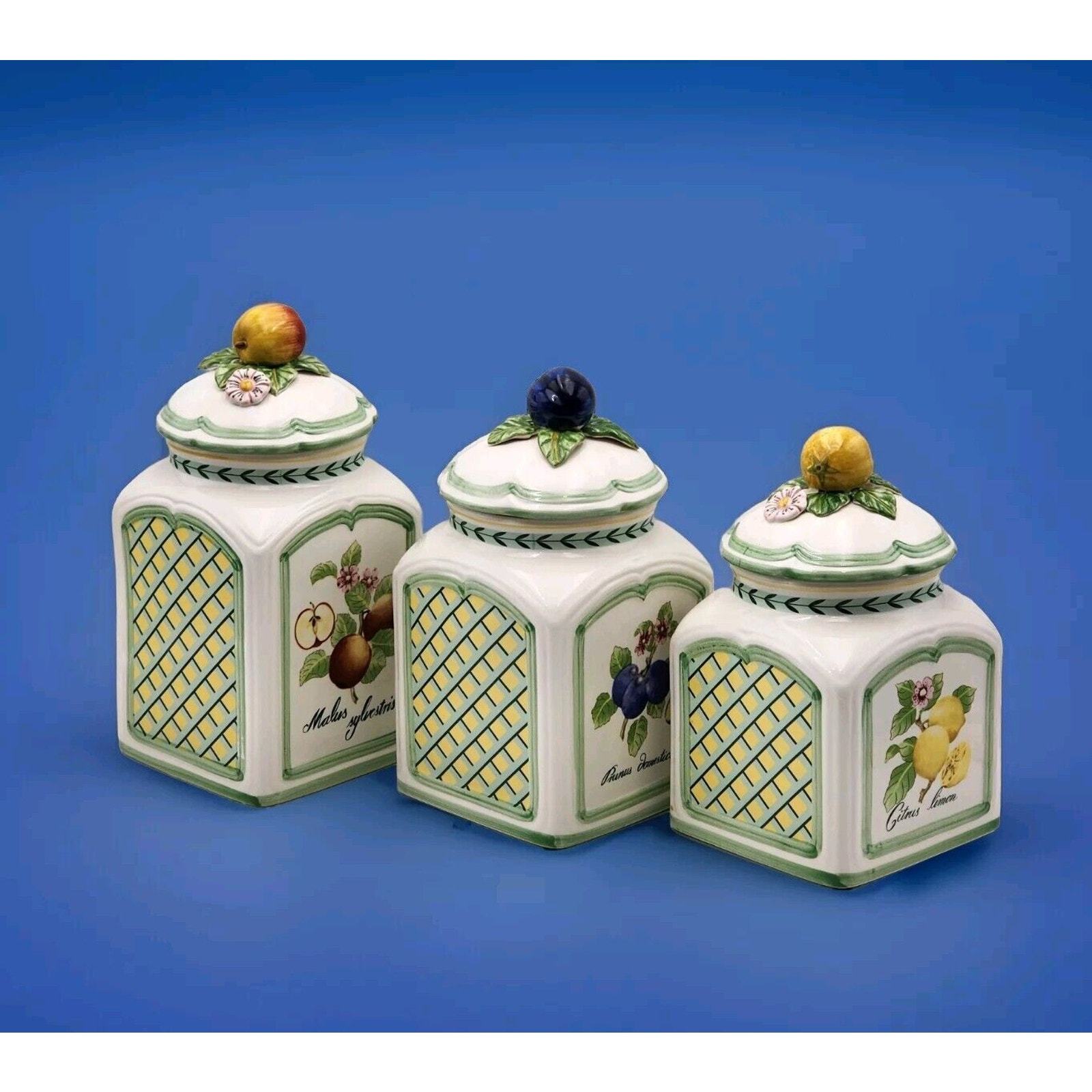 Villeroy & Boch French Garden Canister Set with Fruit Lids VTG Porcelain Jars