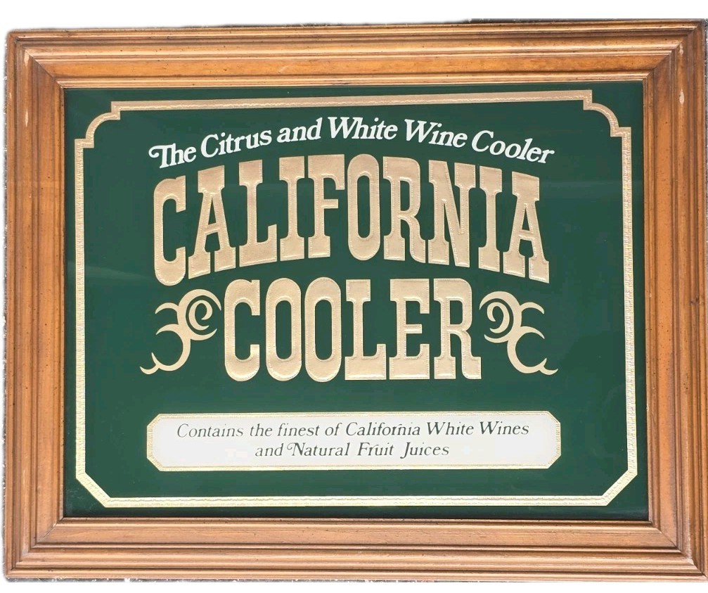 Vintage California Cooler Wine Bar Framed Wood Sign Mirror 19"x15" Home Decor . Condition is Used. Shipped with FedEx Ground / FedEx Home Delivery.