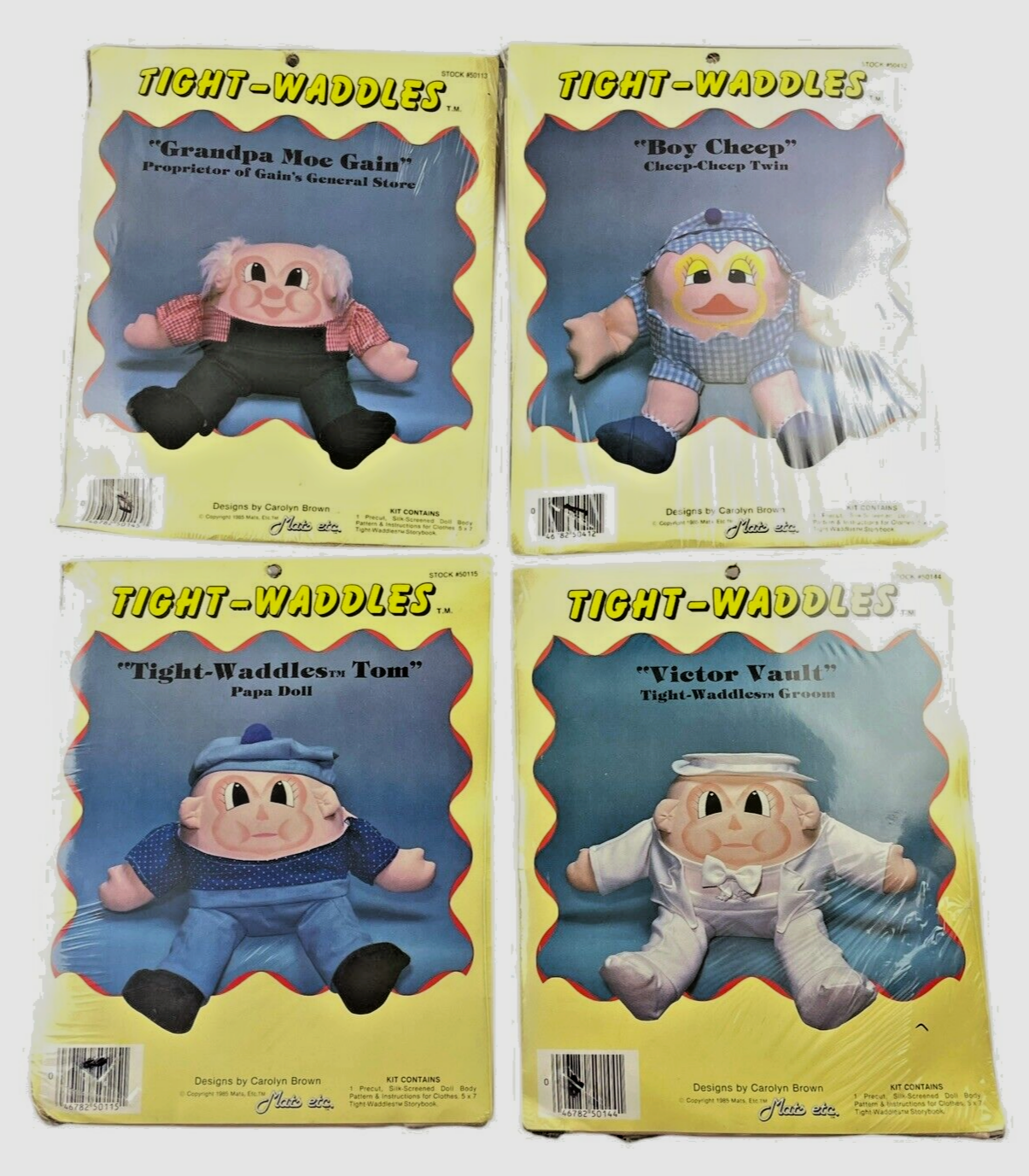 This lot includes four doll kits from Mats Inc, featuring the Tight-Waddles characters from a beloved storybook. Each kit includes pre-cut fabric and silk screen designs for easy sewing. These dolls are perfect for crafters and collectors alike, and are sure to bring joy to anyone who loves handmade treasures.