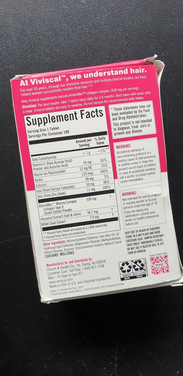 Viviscal Hair Growth Supplements for Thicker, Nourishes Thinning Hairs 180 Tab.