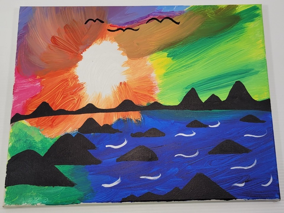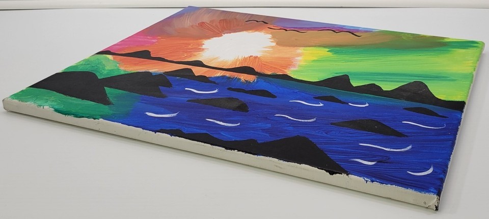 Beach Ocean Sunset Sky Stretched Canvas Painting Art 20 x 16"