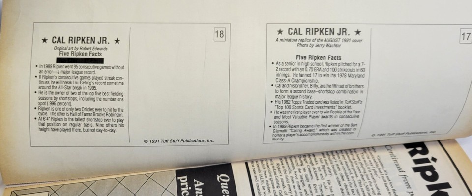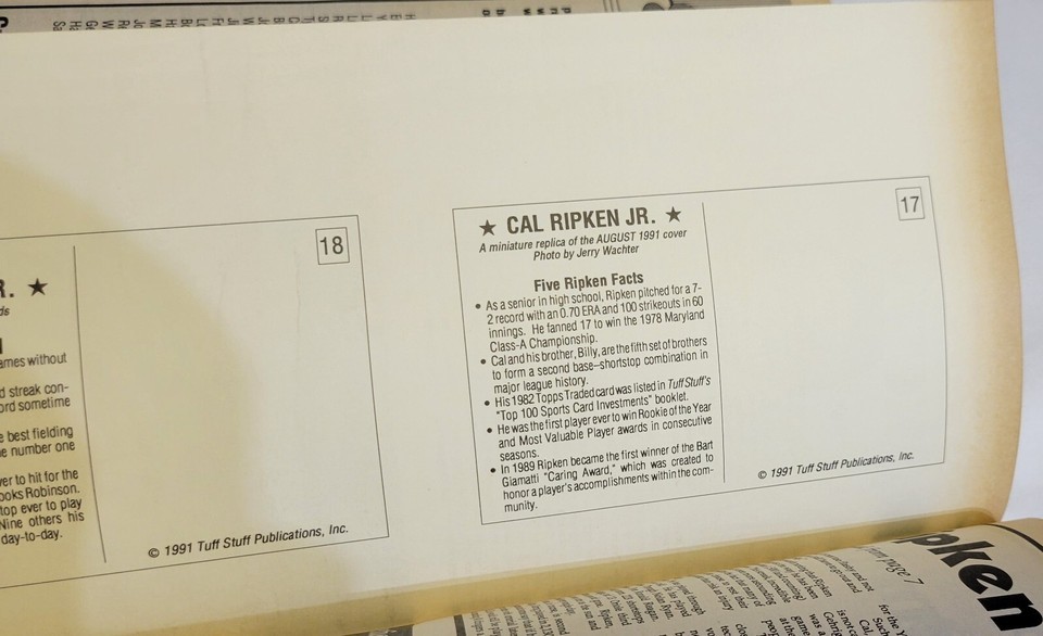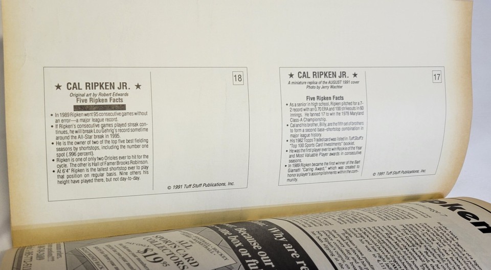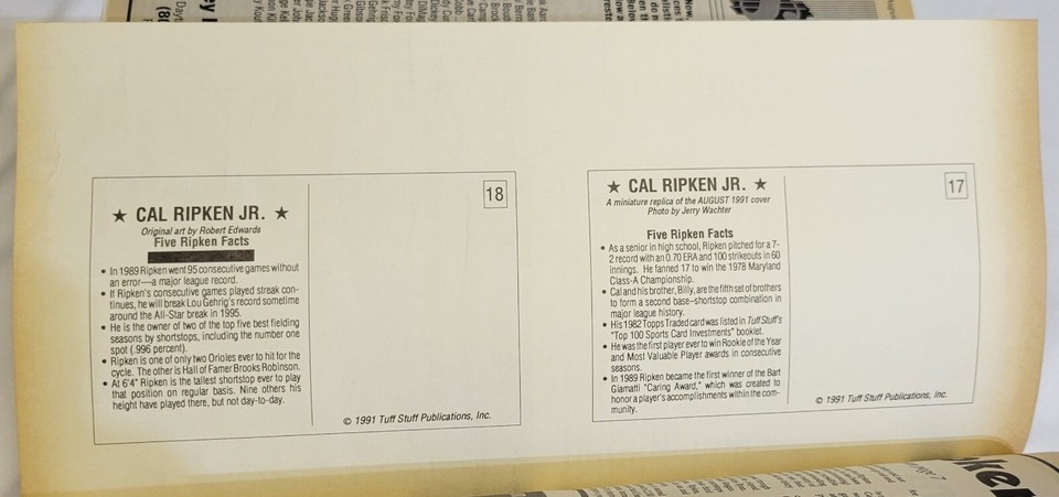 Tuff Stuff Oversized Sports Price Guide Publication Magazine August 1991 Ripken
