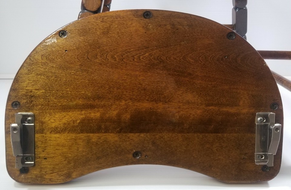 The DIY restoration does have imperfections in addition to normal signs of age and wear with nicks/scuffs and possible scratches. One of the support rods between the front 2 legs appears to have been replaced. The legs are a little shaky but still fully intact.