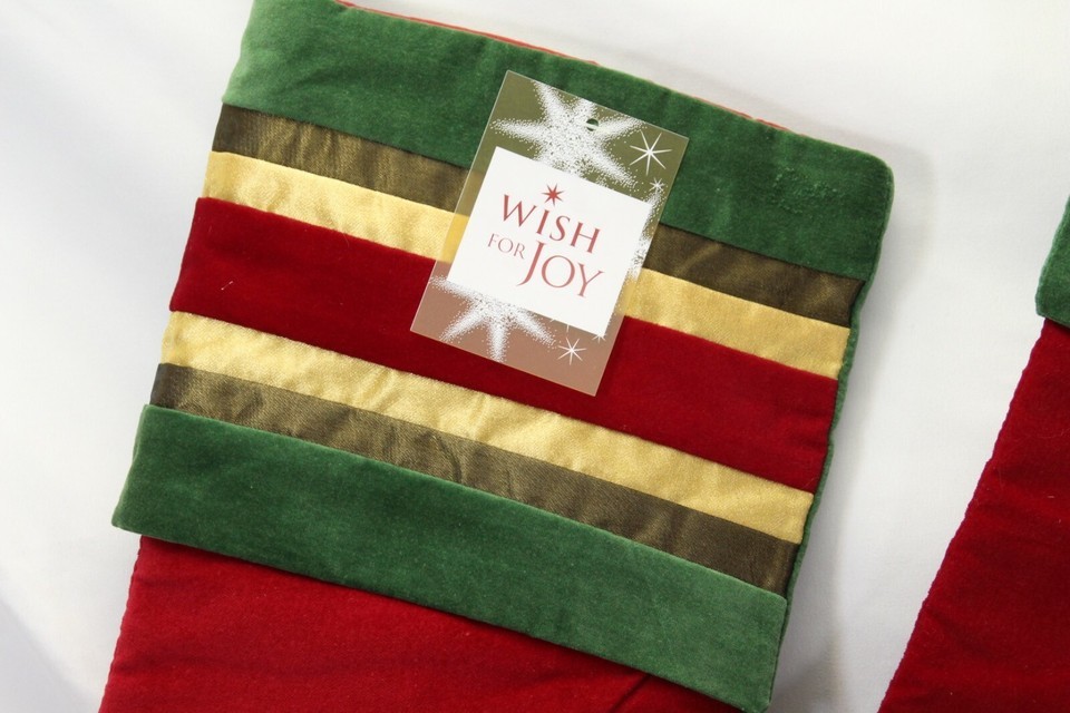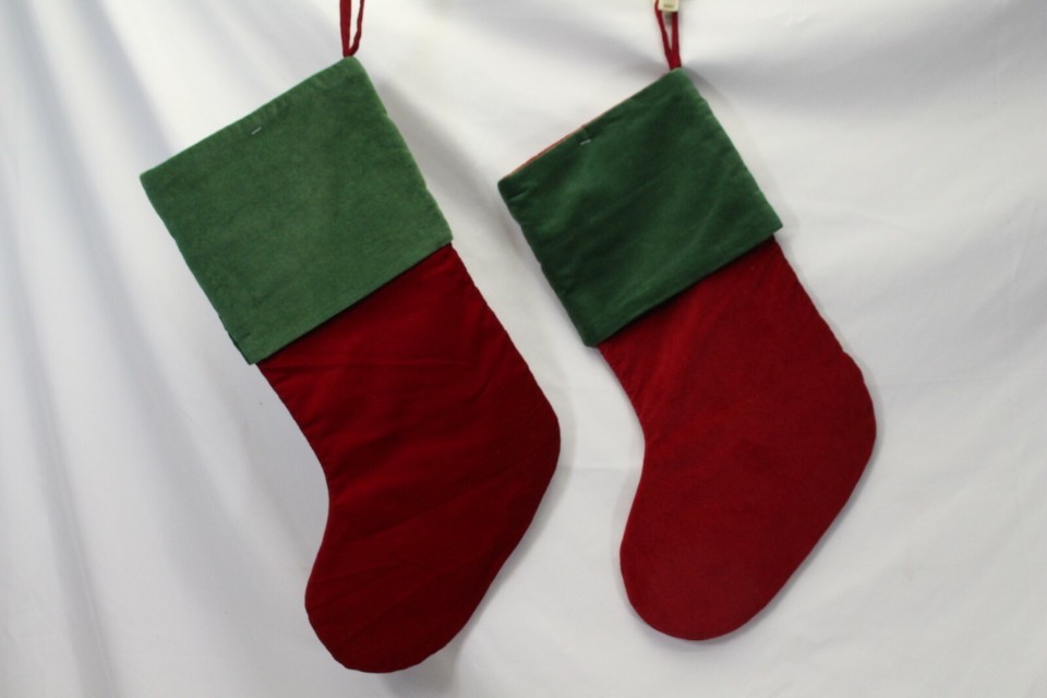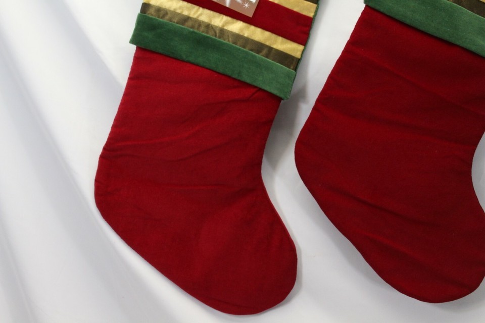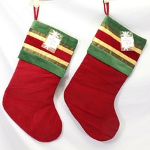 Sears Christmas Stockings Velvet Red Green Gold 18" Lot of 2 Xmas NEW