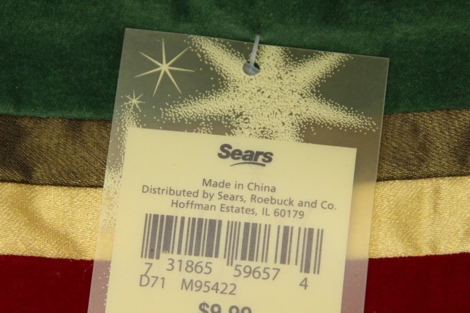 Sears Xmas Stockings Velvet Red Green Gold 18"