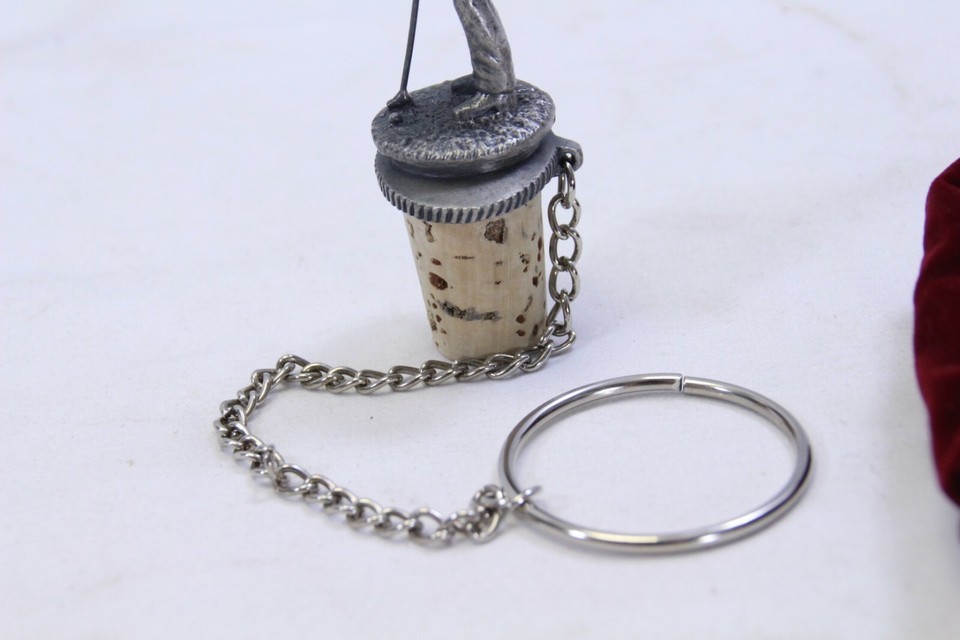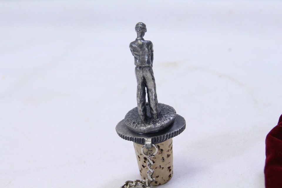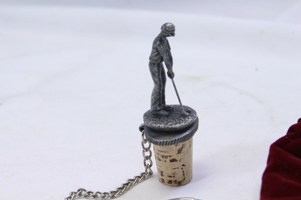 Golfer Golf Player Cork Wine Bottle Stopper w/ Chain Pewter Vintage + Bag