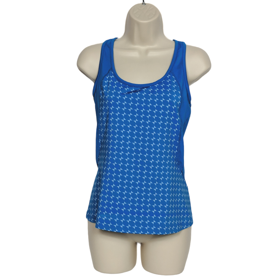 Nordic Track Womens Tank Top Size Small Blue Geometric Shelf Bra Scoop Neck