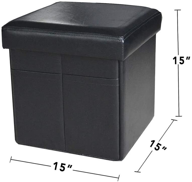 PERFECT DIMENSION: Storage chest foot rest measures 15"X15"X15" after set up. Multi-purpose storage bench ottoman footrest works great as shoe bench, footstool, window bench, bed stool, toy chest, coffee table, puppy step, etc.