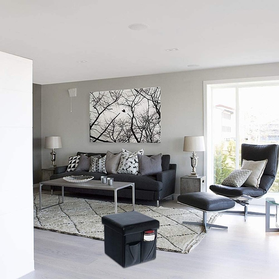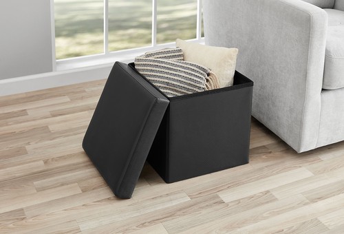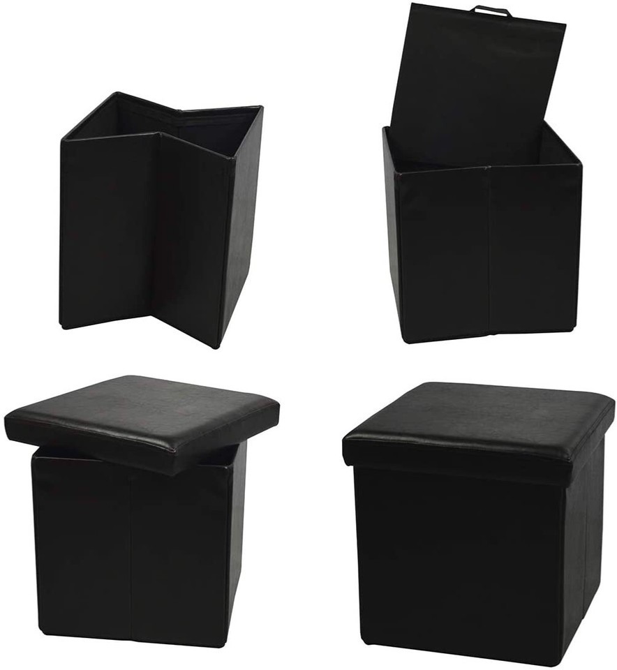 FOLDING STORAGE OTTOMAN: Collapsible footrest stool seat is super easy to assemble, no instructions needed. Faux leather ottoman can be folded flat when not in use for convenient storage, making them perfect for dorms, RVs and small apartments.