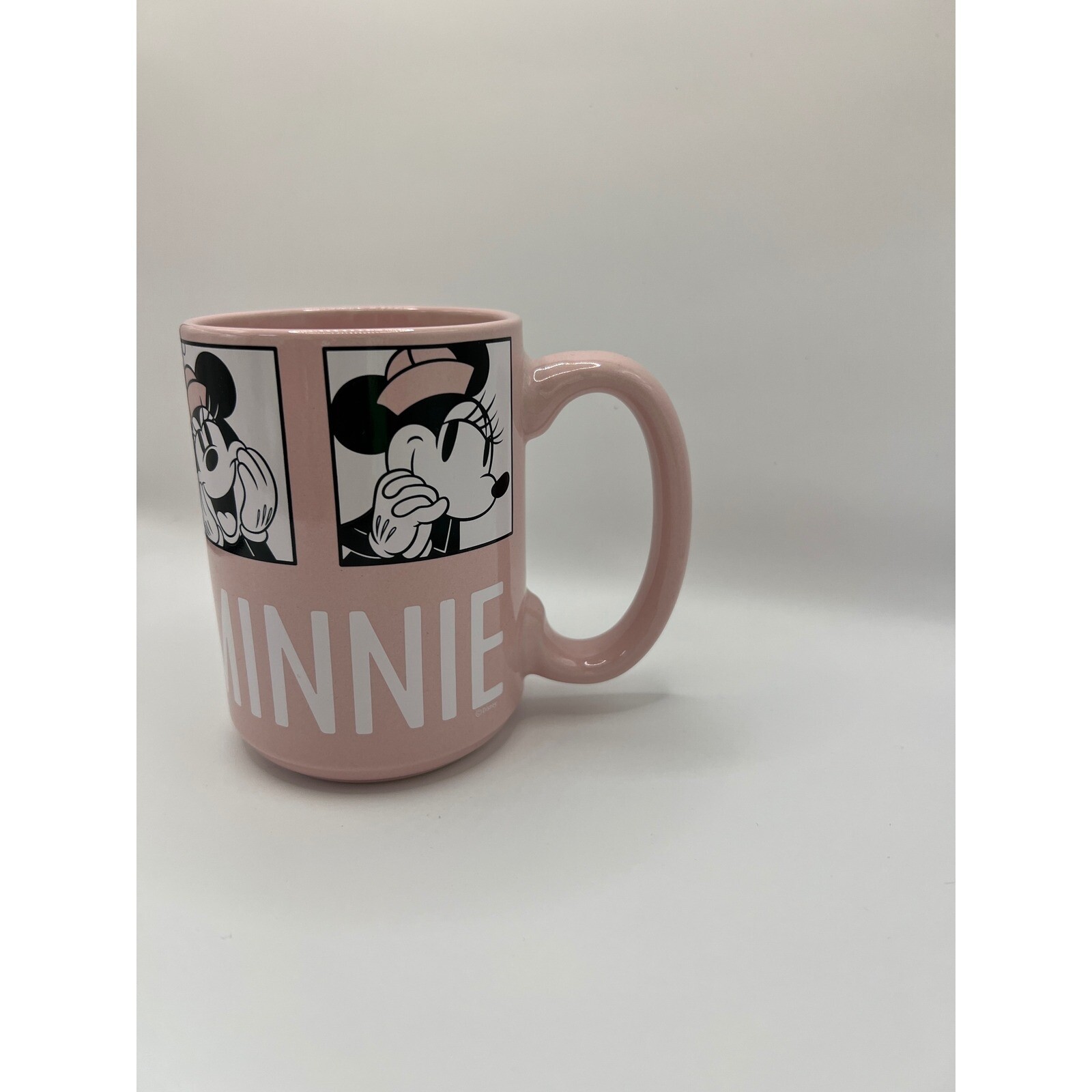 Keywords: Minnie Mouse, Disney mug, coffee mug, tea cup, pink mug, ceramic mug, novelty mug, cartoon character, Disney collectible, gift idea, home decor, kitchenware, Disney fan