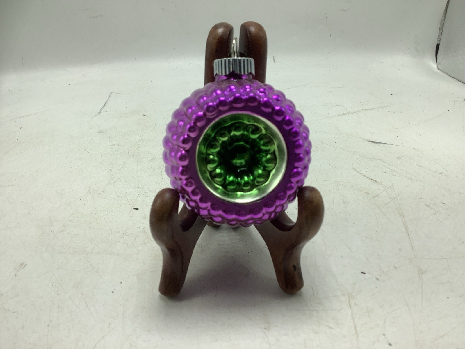 VTG Christopher Radko Shiny Brite Double Indent Bumpy Ornament Green Purple VGUC