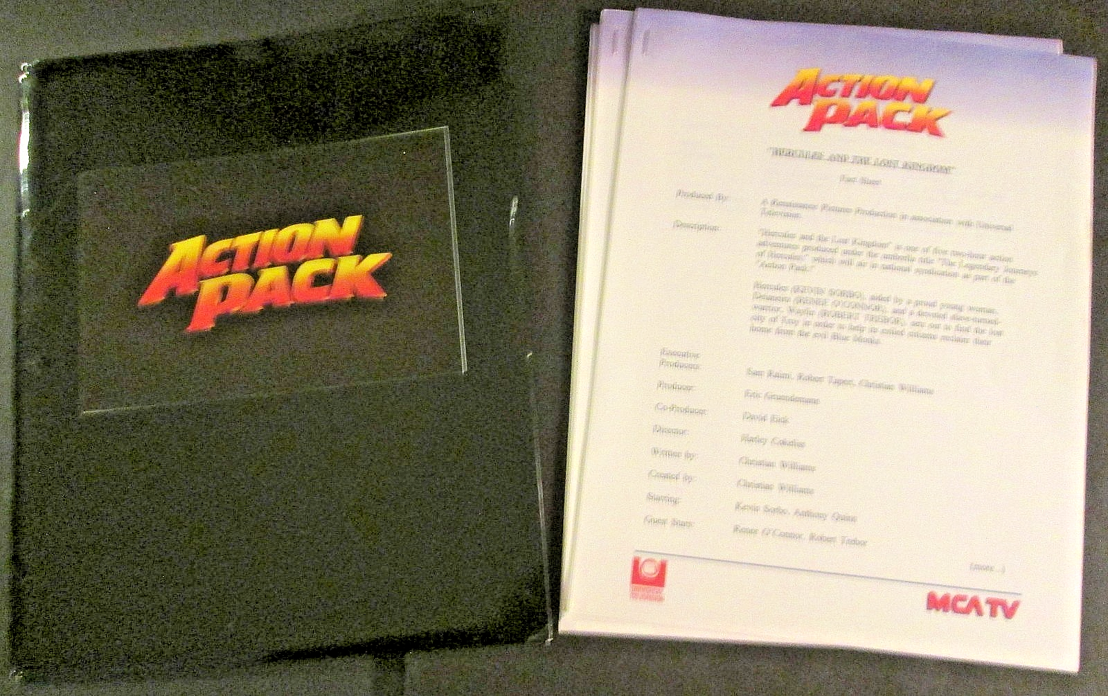 KEVIN SORBO: (HERCULES) RARE FIRST SEASON TV PRESSKIT (CLASSIC TV SERIES) PLUS PRODUCTION NOTES ON THE MAKING OF THE SERIES