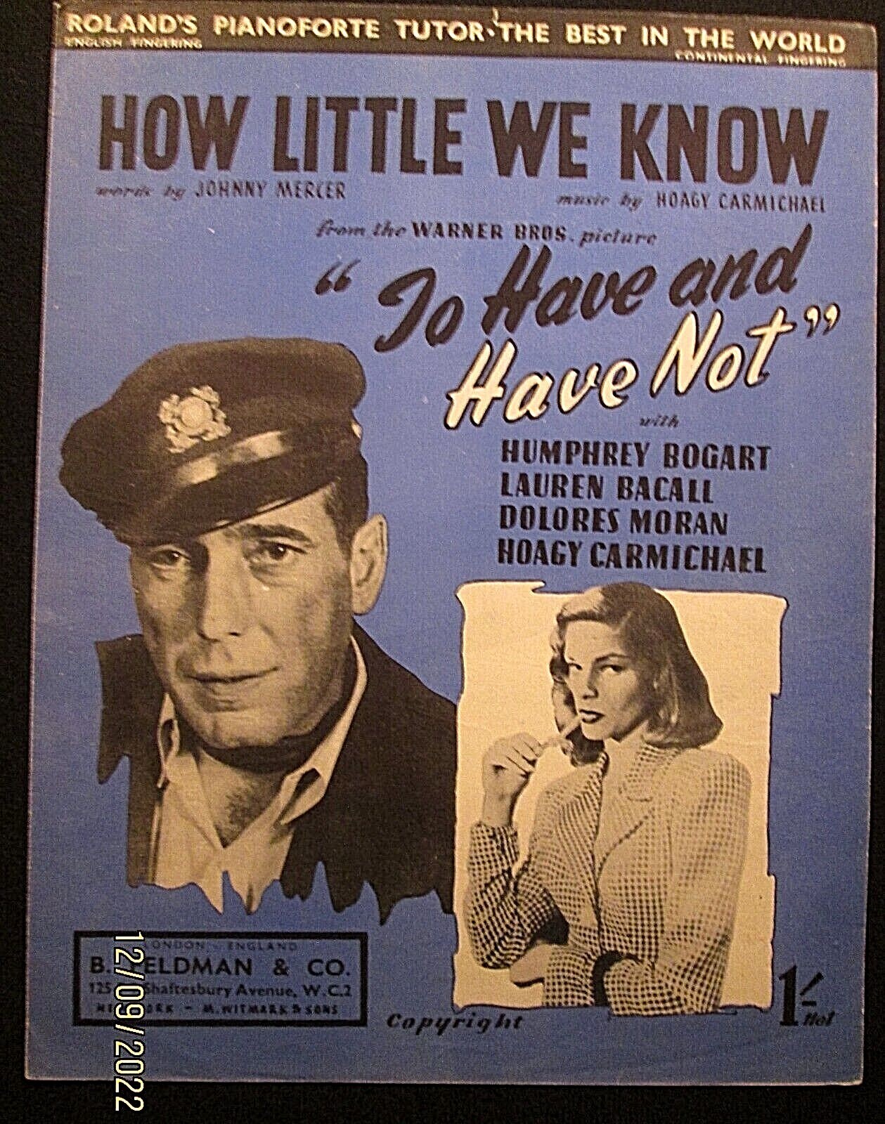 HUMPHREY BOGART,LAUREN BACALL (TO HAVE AND HAVE NOT) 1944 SHEET MUSIC