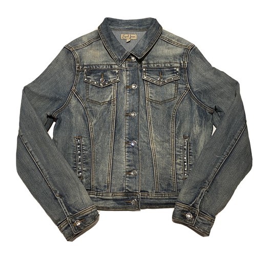 Earl Jean Denim Jacket Womens Large Rhinestone Jean Stretch Button Up