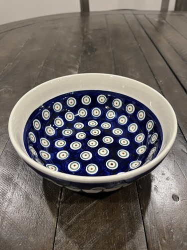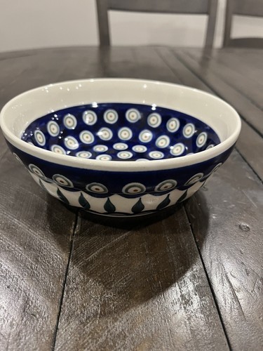 This exquisite small bowl from Blue Rose Pottery is a stunning addition to any collection. Crafted using traditional pottery techniques in Boleslawiec, Poland, this piece features a beautiful flowering peacock design that is sure to catch the eye. Made of high-quality stoneware, ceramic, and stone materials, this bowl is both durable and functional. The backstamp is printed and the item is listed under the Pottery Glass, Decorative Cookware, Dinnerware Serveware, and Bowls categories . Perfect for serving small snacks or as a decorative piece, this bowl is a must-have for any pottery enthusiast.