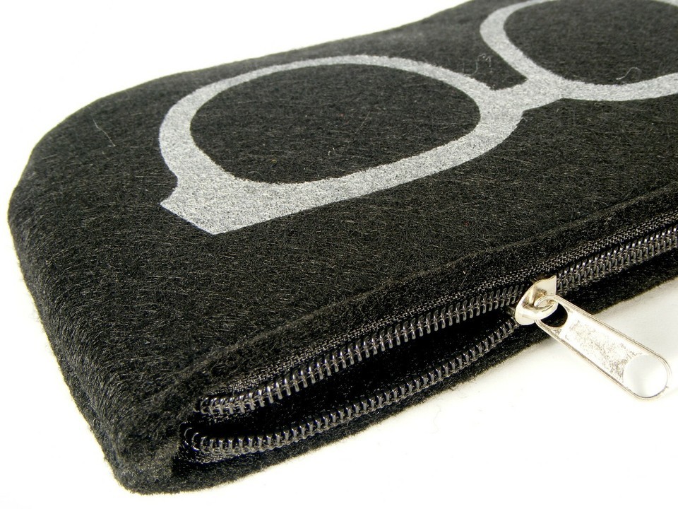 NEW Soft Strong Felt BLACK /WHITE Case with Zipper for all Sunglasses / Eyeglasses.