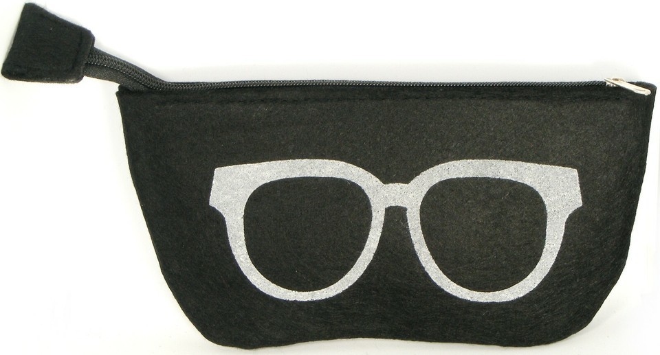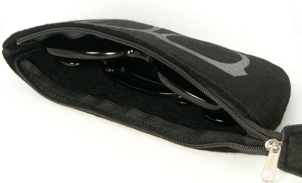 NEW Soft Strong Felt BLACK /WHITE Case with Zipper for all Sunglasses Eyeglasses