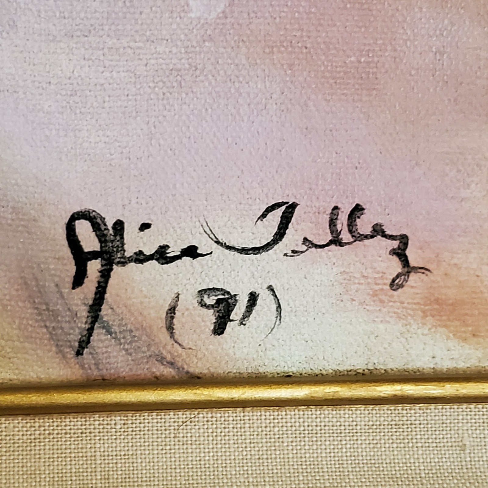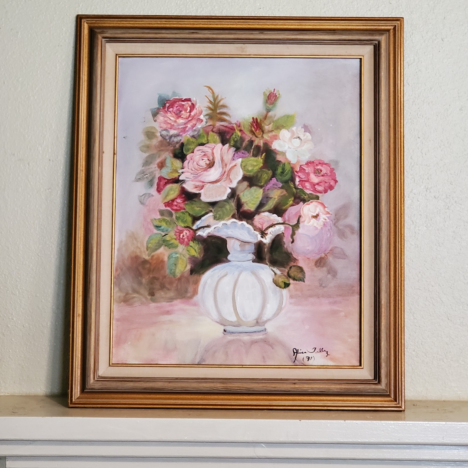 Vintage 1991 Painting Still ART Pink Roses 21x25 Inch Wood Framed Alicia Tilley
