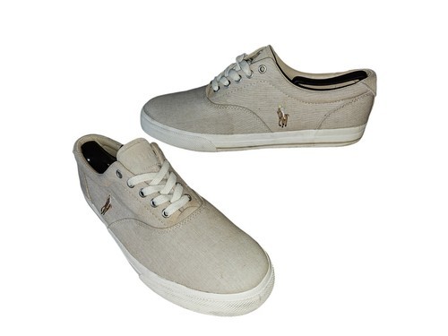 Polo Ralph Lauren Vaughn Sneaker Shoes Men's Size 8.5 Beige Canvas