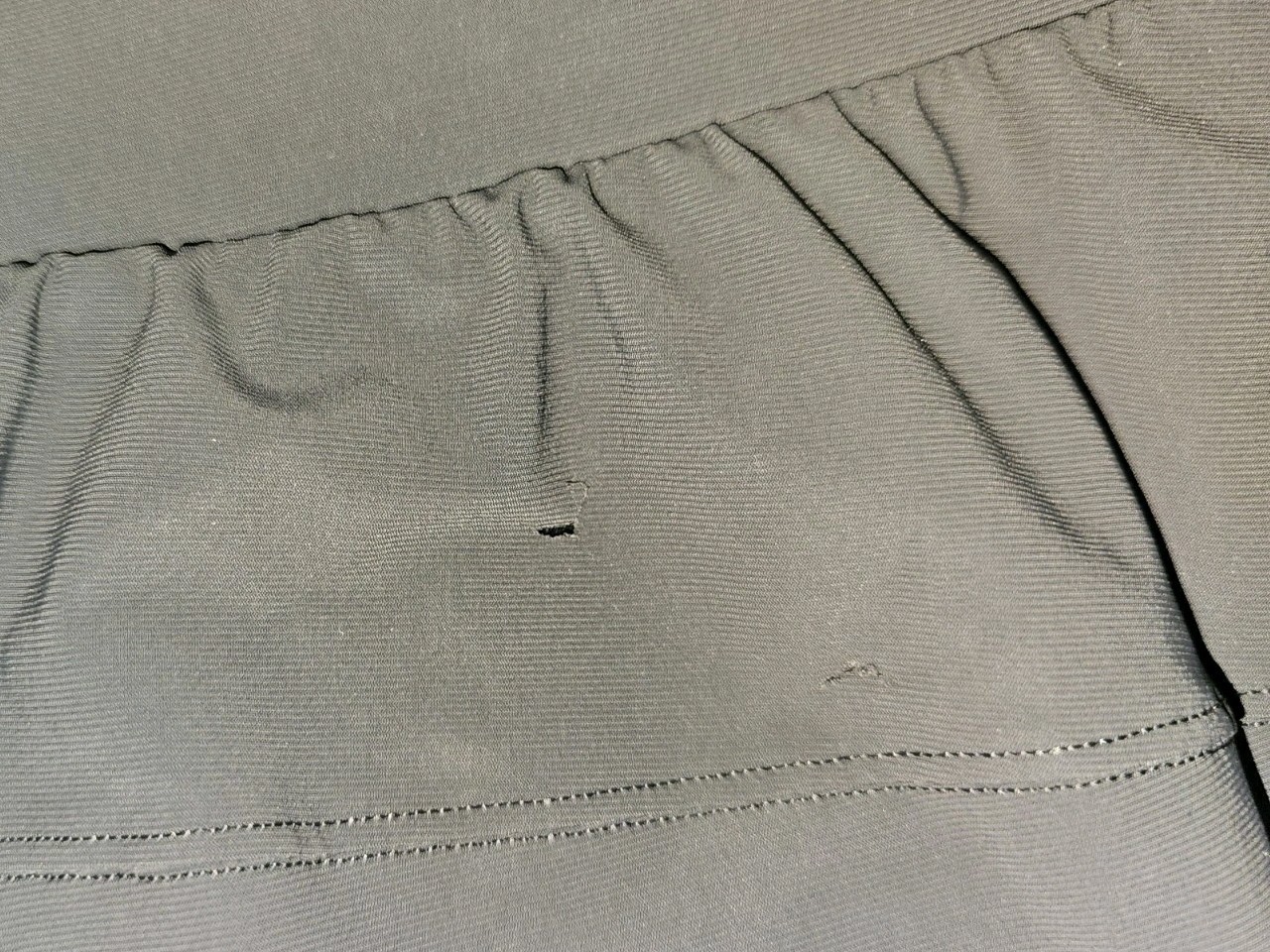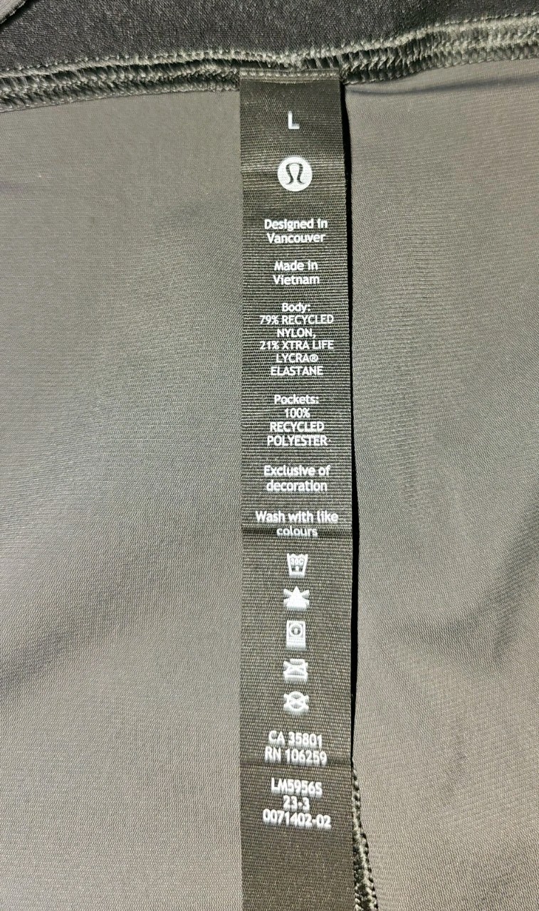 Pants have 2 small holes in upper back waist of pants. I have included a photo. The Lululemon Men's Surge Jogger in Grey is a stylish and functional pair of activewear pants designed for running and jogging. Made from a blended fabric of 79% recycled nylon and 21% Xtra Life Lycra, these joggers feature a secure zipperless back pocket and a tapered leg style for a modern look. With a comfortable drawstring closure and a waist size of 30 inches, these pants are perfect for winter, fall, and spring seasons. Machine washable and in size L, they are versatile for various activities and athletic occasions.