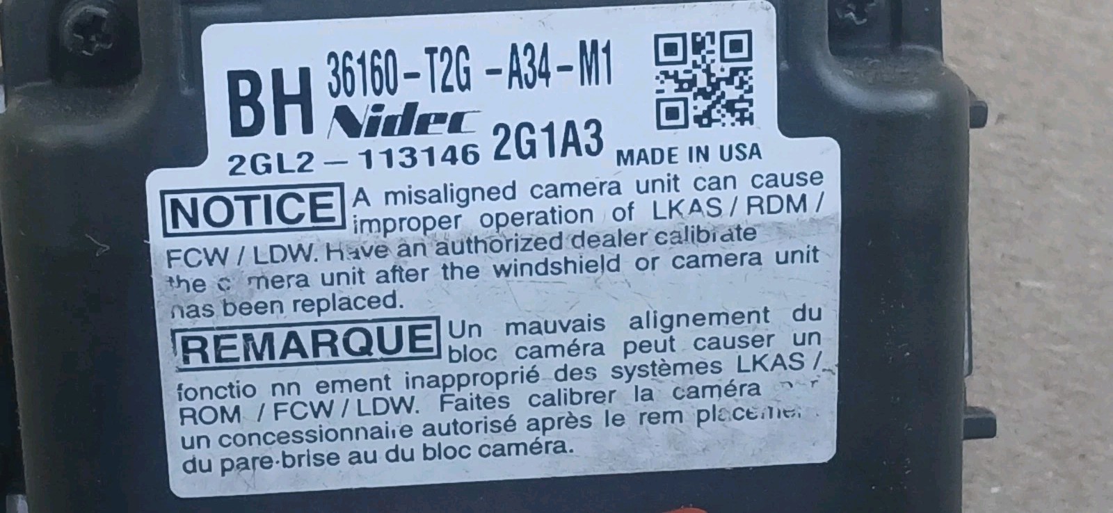 2017 Honda Accord Front Windshield Monocular Camera 36160-T2G-A34-M1 OEM
