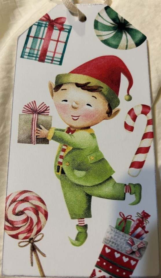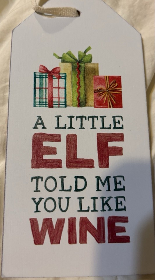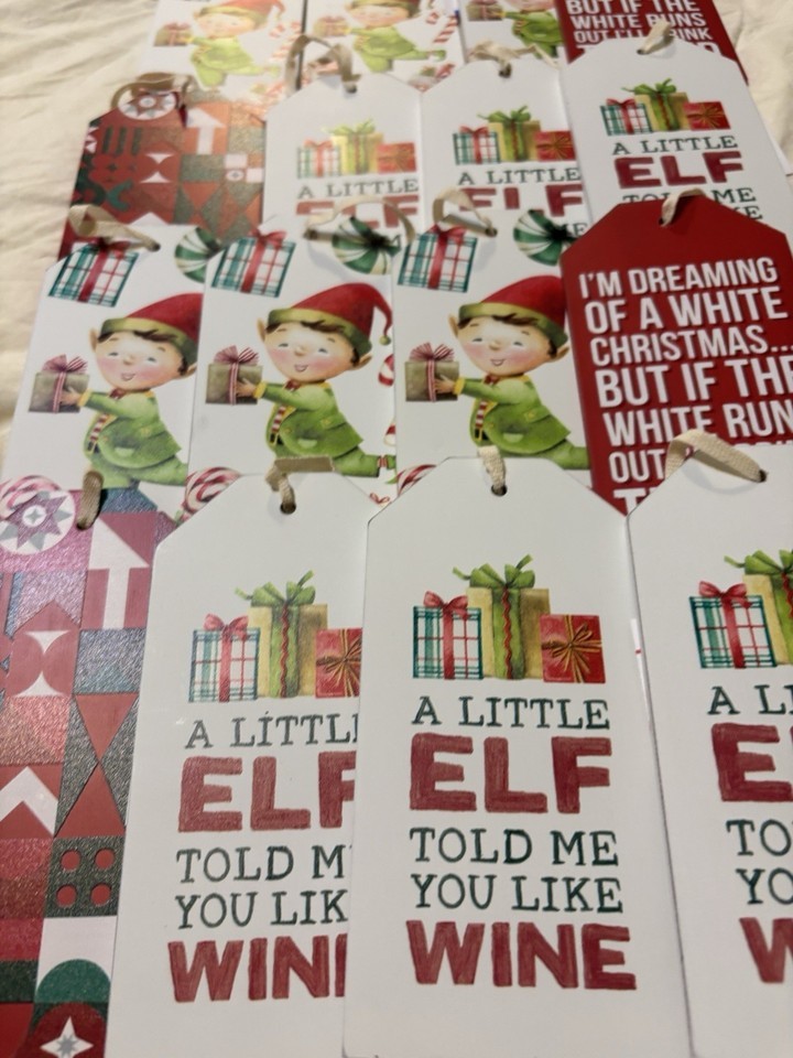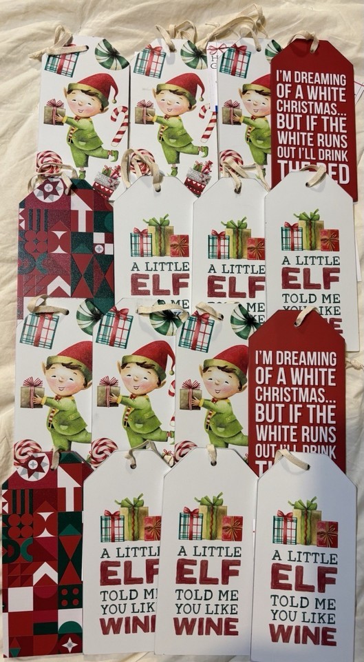 Lot Of 16 Wooden Wine Gift Tags Christmas Elf & Red Wine