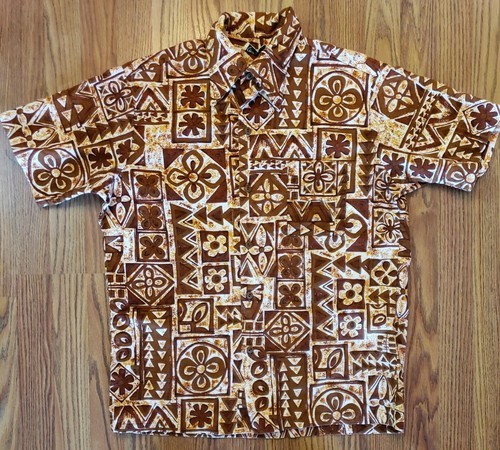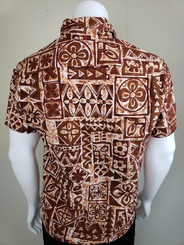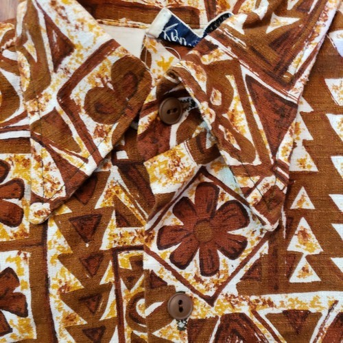 Vtg Barkcloth Tapa Print Shirt Mens L 60s and similar items