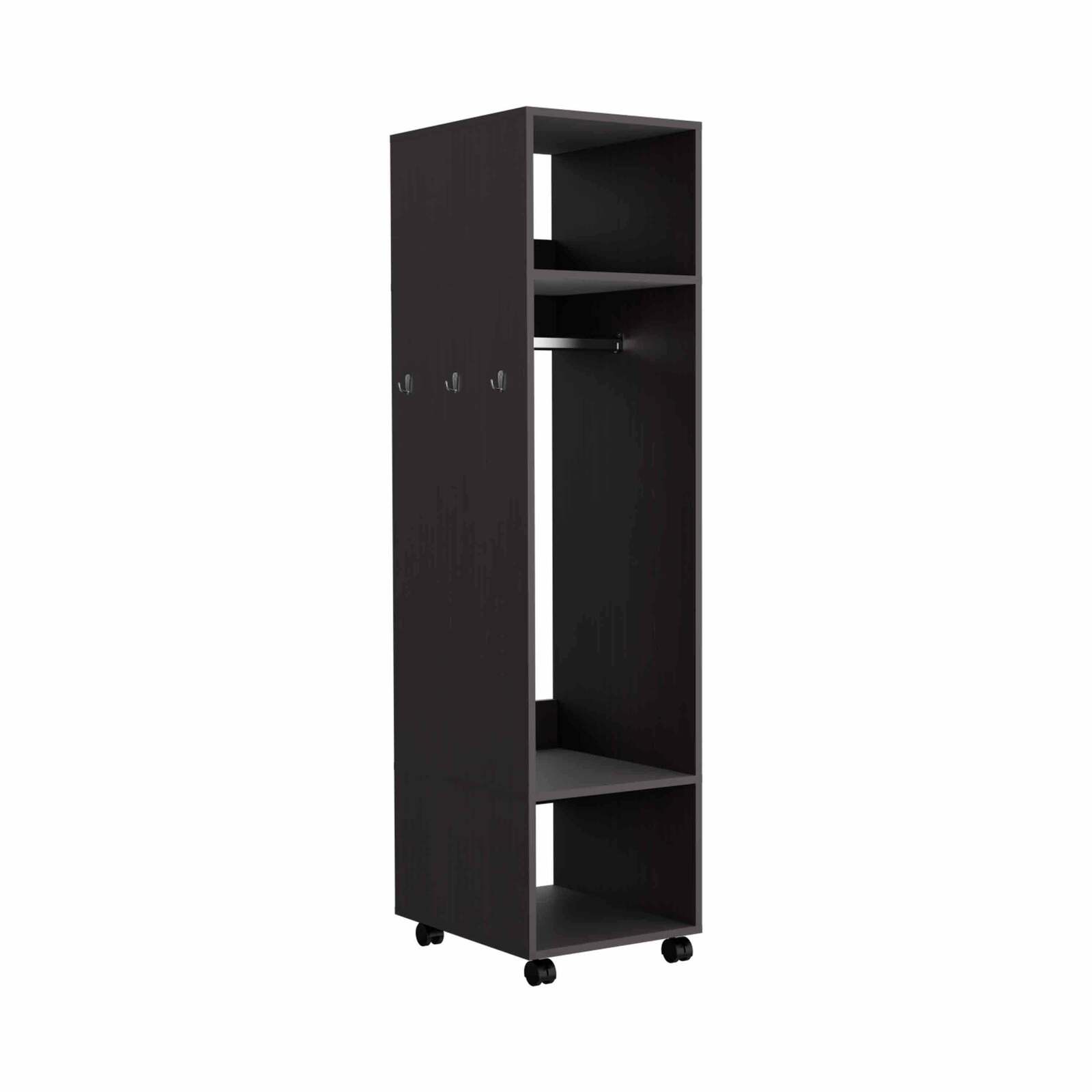 HANGING SPACE: With hanging room dimensions of 15.7 inches wide and 36.8 inches high, this armoire includes a hanging rod to store your pants, dresses, and shirts wrinkle-free. It also includes Three hanging hooks to keep your belts, chains, or bags handy.
