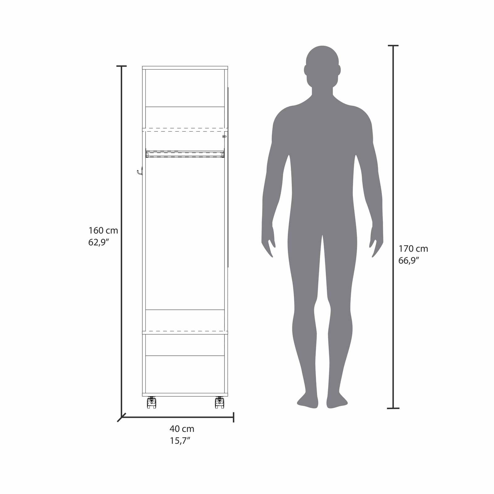 OVERALL DESIGN: This armoire offers a comprehensive solution with its ideal size, dimensions, ample storage capacity, and modern aesthetic, enhancing the functionality of your room without overwhelming the available space