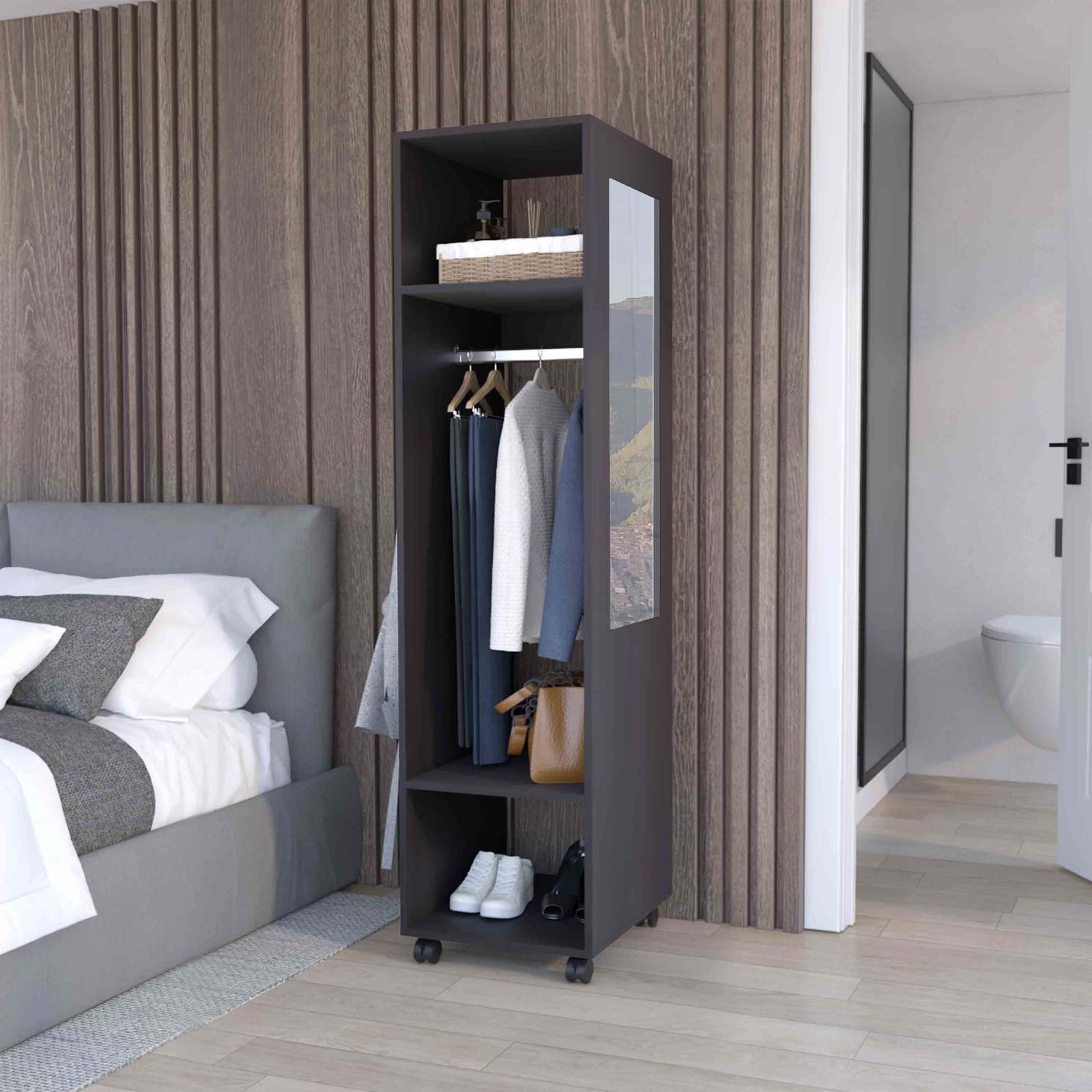 MIRROR INCLUDED: A side mirror with dimensions 33in x 11in allows for a quick outfit check befre heading out the door.