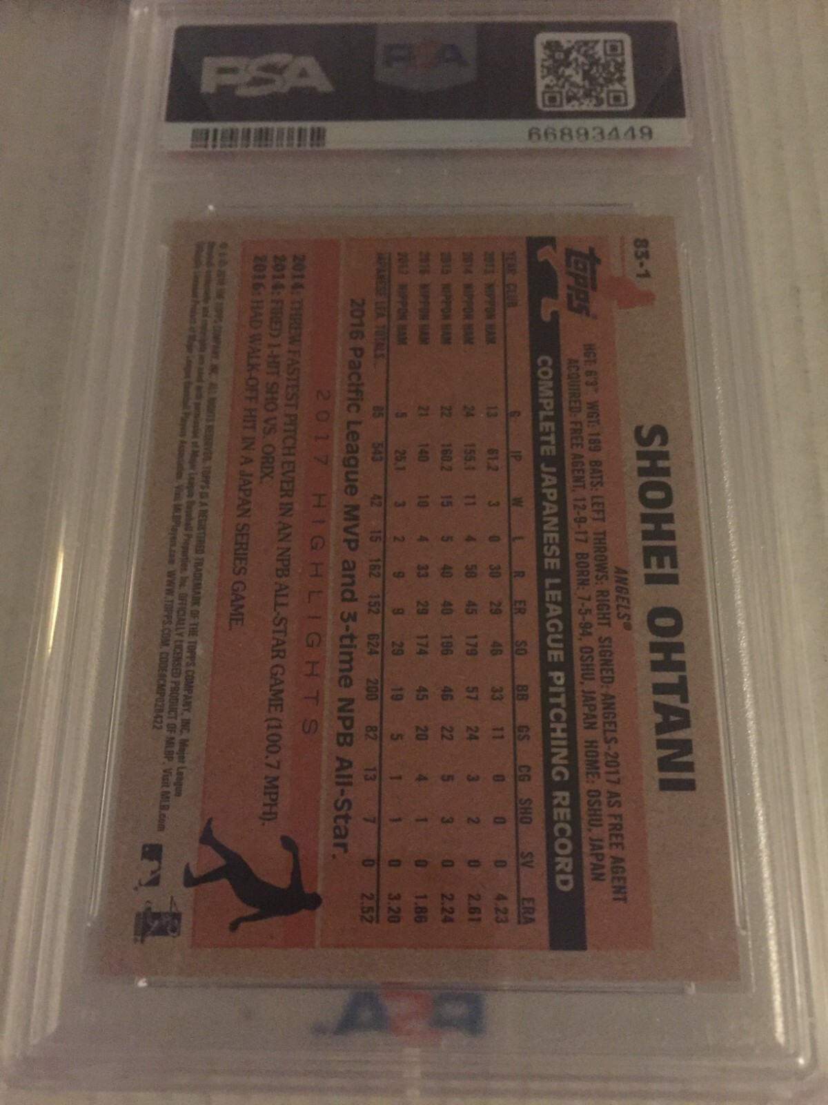 2018 Topps Los Angeles Angels Shohei Ohtani Rookie Card #83 PSA Graded 9.0