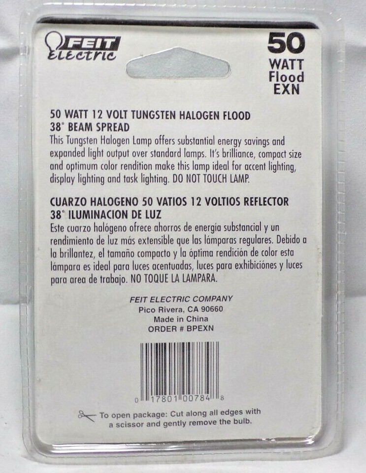EXN Feit Electric Halogen Quartz Reflector Flood Bulb 50W 12V New Sealed