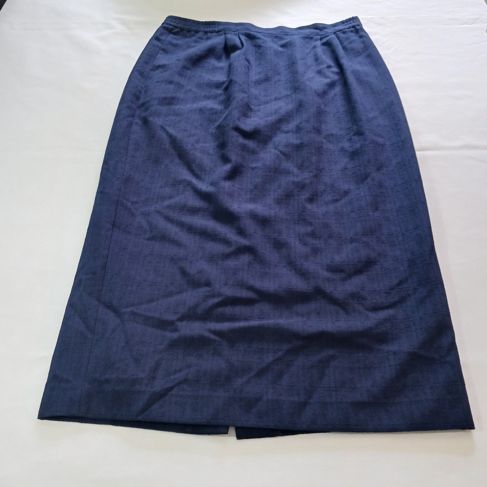 Pull-On Back Zipper Women's Navy Blue Polyester Skirt Size 14 Measured Waist 33