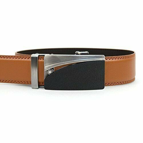 Men Genuine Leather Sliding Removable Ratchet Buckle Ratchet Belt- British S(32)