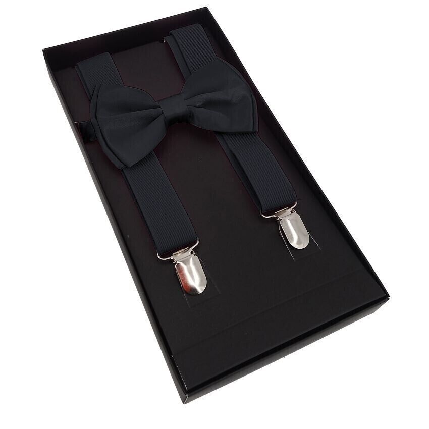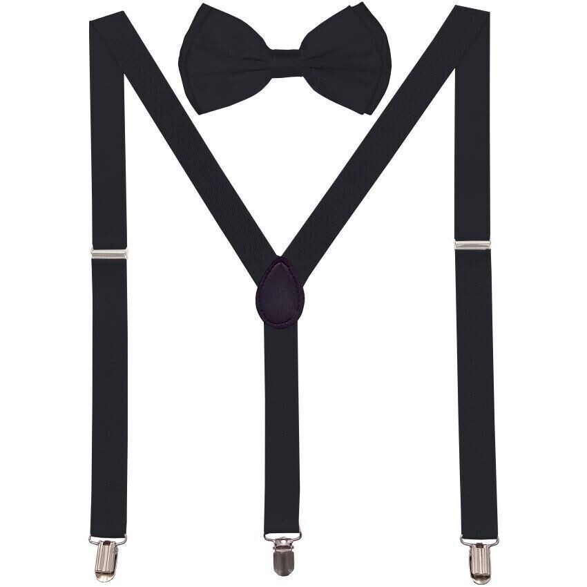 Men AB Elastic Band Black Suspender With Maching Polyester Bowtie