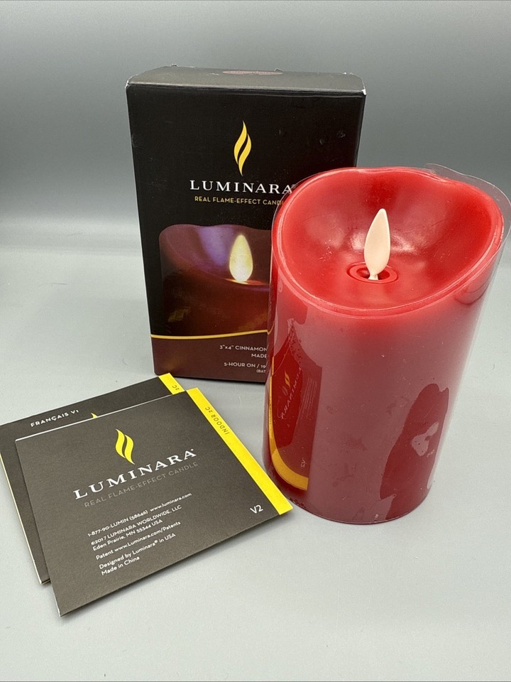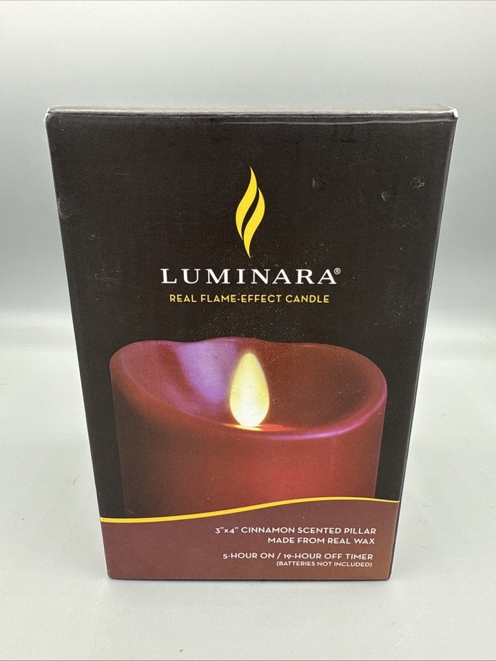 Luminara Burgundy Cinnamon Scented Pillar Real Flame Effect Wax Candle 3" x 4"