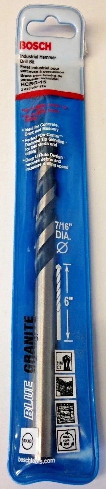 The Bosch BlueGranite Turbo HCBG15T Hammer Drill Bit is built for professionals who demand speed, durability, and precision when working with masonry and stone. With its 7/16-inch diameter and 6-inch overall length, this impact-rated bit is designed to work efficiently in tough drilling conditions. The upgraded build delivers up to 5X longer life and 2X faster drilling performance compared to standard masonry bits.