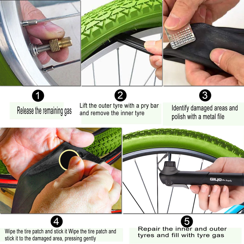 uD83DuDEB2a Essential Bicycle Repair Kit a The most common problem when riding a bicycle is a flat tire. Tire levers are included in the kit to help you pry tires away from the rim. If your flat tire is caused by a small hole, you can use a repair kit to fix it. After repairing or replacing the inner tube, you need to inflate the tire. Small hand pumps can be used to replenish the gas.