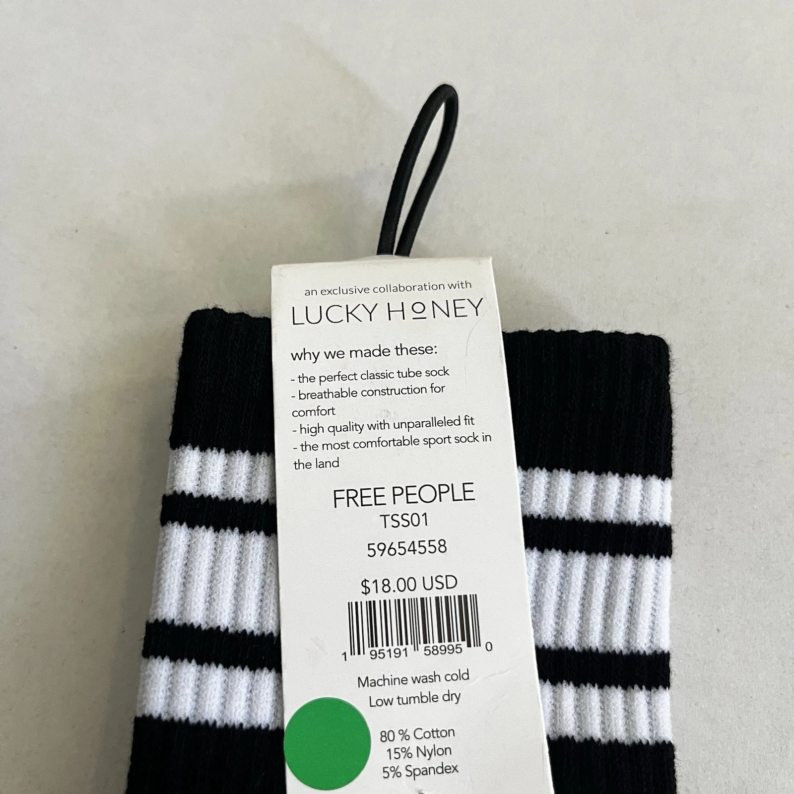 Free People Movement Logo Stripe Tube Socks Black FP Movement Lucky Honey OS