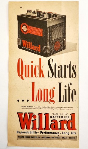 1947 Willard Safety Fill Battery Master Duty Advertisement Automobilia DWNN20