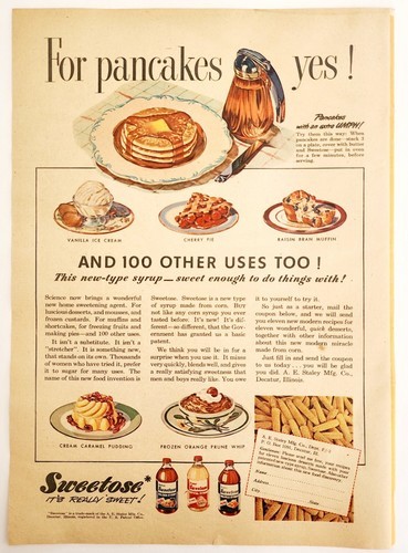 1947 Sweetose Pancake Bakery Sweetener Advertisement Baking Desserts DWNN21