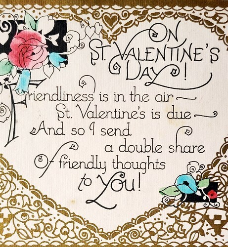 On St Valentine's Day Victorian Greeting Card Watercolor Gold Floral PCBG6D