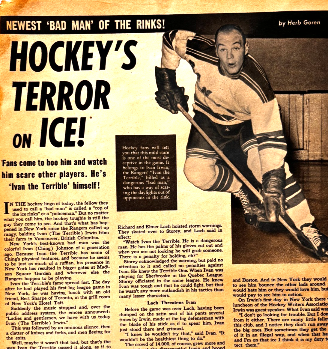 1954 Ivan The Terrible Irwin NHL Hockey Terror Article New York Rangers DWXX5