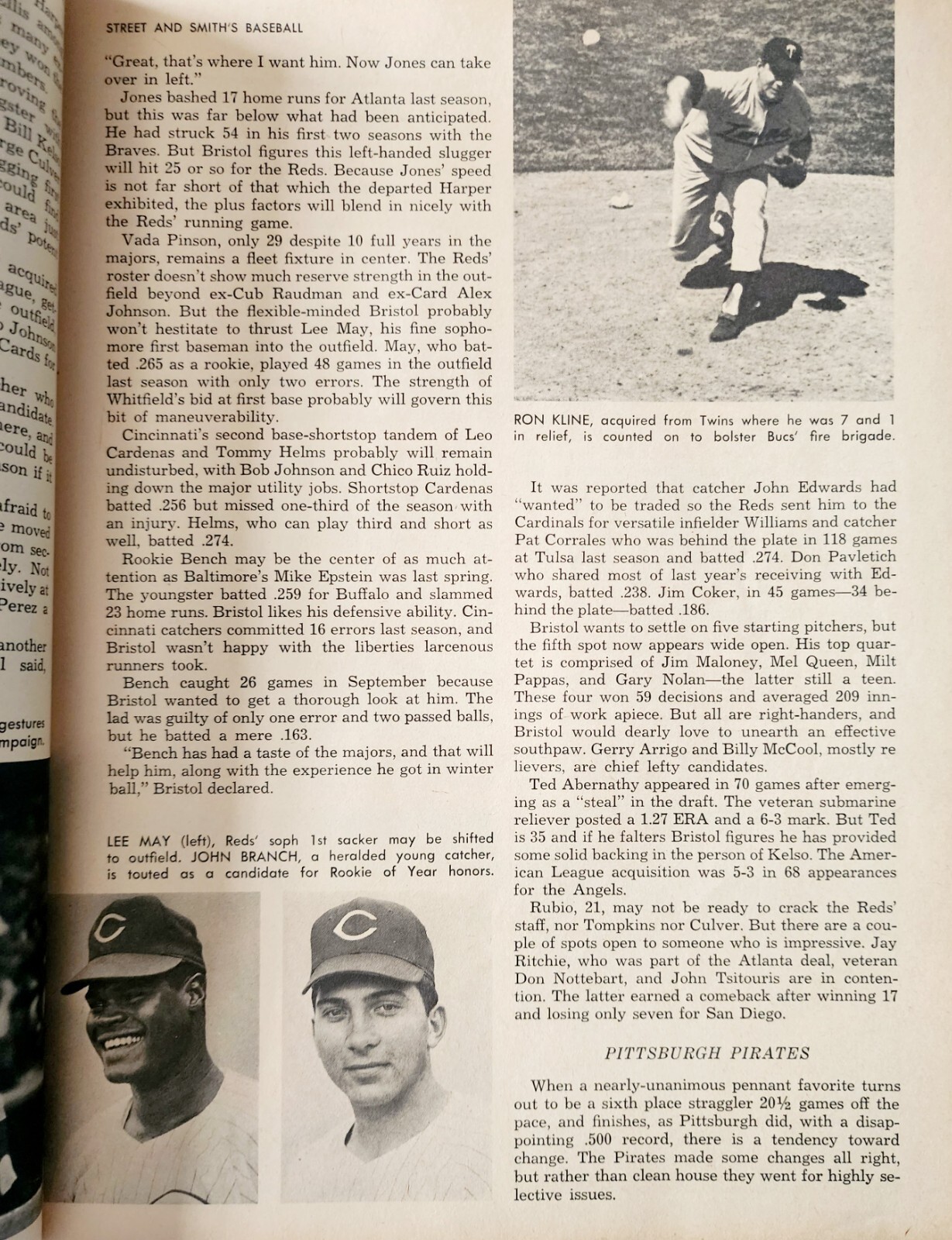 1968 Street & Smith's Official Baseball Yearbook Magazine Rosters Schedule DWF18