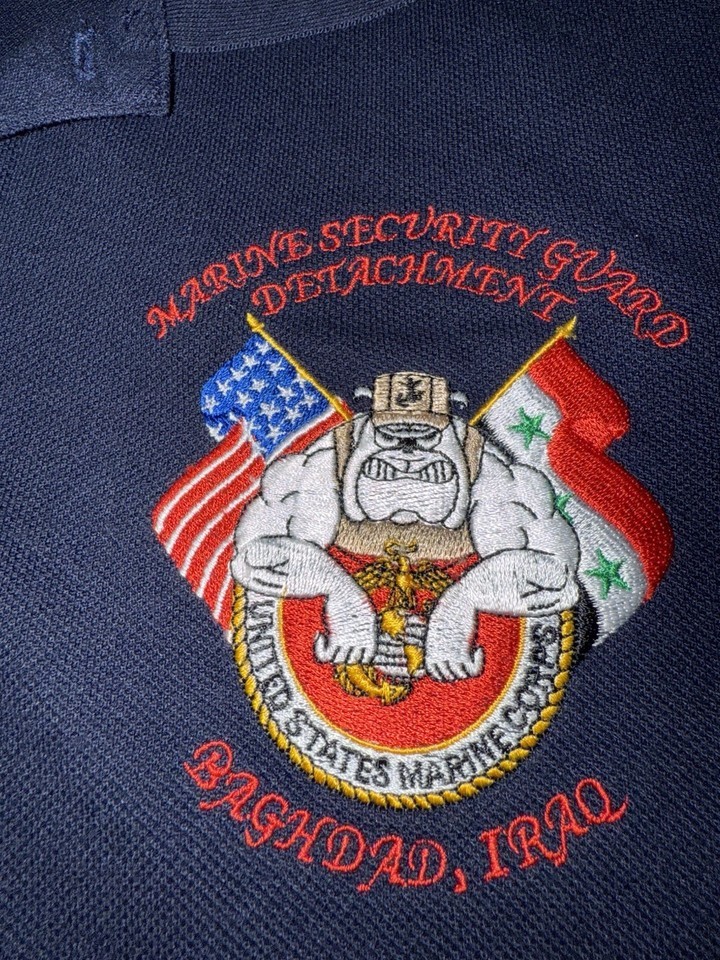 RARE USMC Baghdad Iraq Marine Security Guard Polo Shirt Bulldog MSG Detachment M