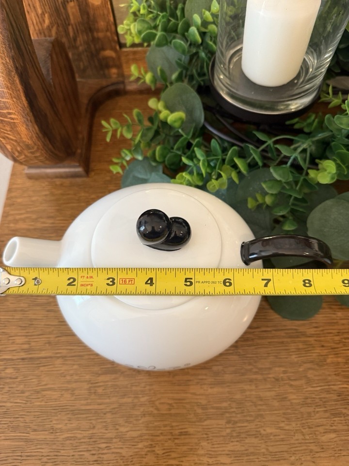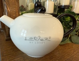 RARE! BergHOFF " Lover By Lover" Porcelain Teapot, White w/ Black, Heart Lid